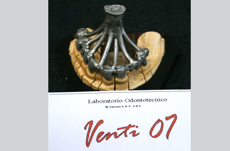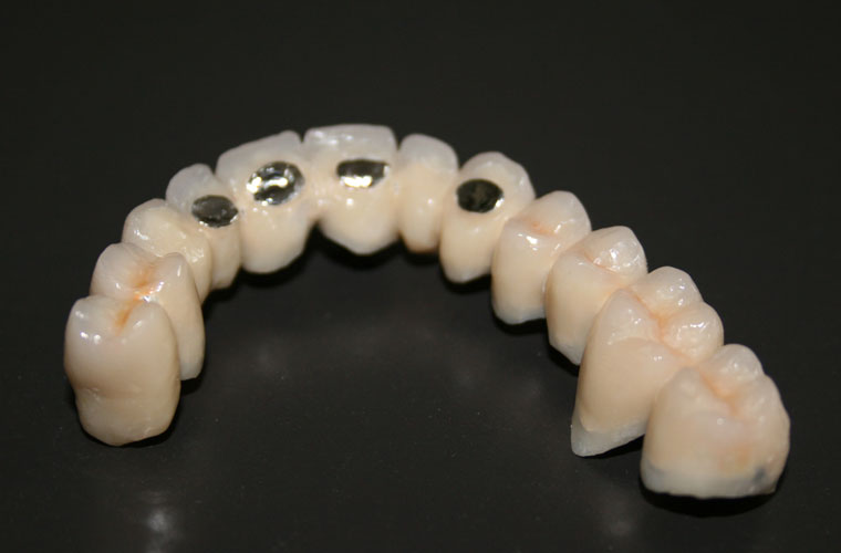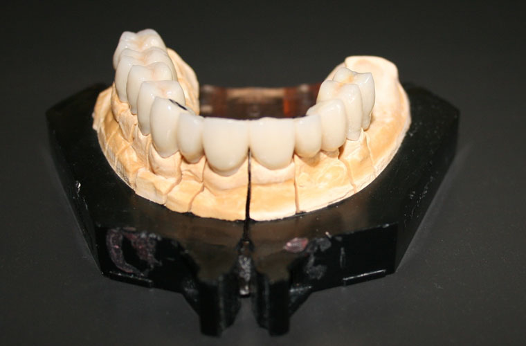 Si realizzano corone e ponti provvisori con sottostruttura in cobalto-cromo e resina acrilica, con o senza battute metalliche, con chiusure marginali in resina o metallo, per la definitiva guarigione dei tessuti e per il mantenimento della dimensione verticale.